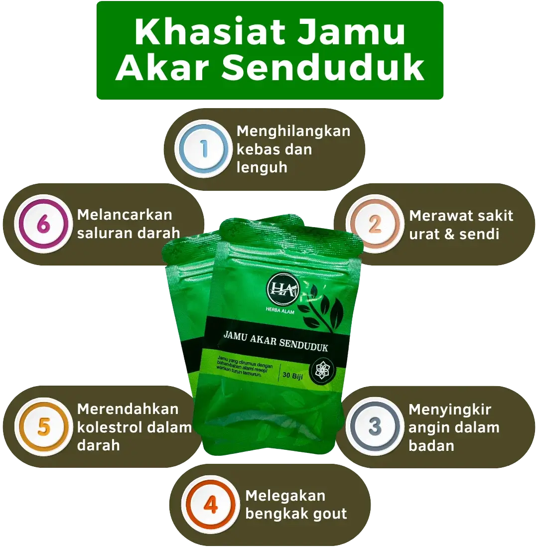 Jamu Akar Senduduk diformulasikan secara tradisional bagi membantu mereka diluar sana yang mengalami masalah urat saraf, sendi, angin- angin dalam badan, gout dan juga lesu badan.