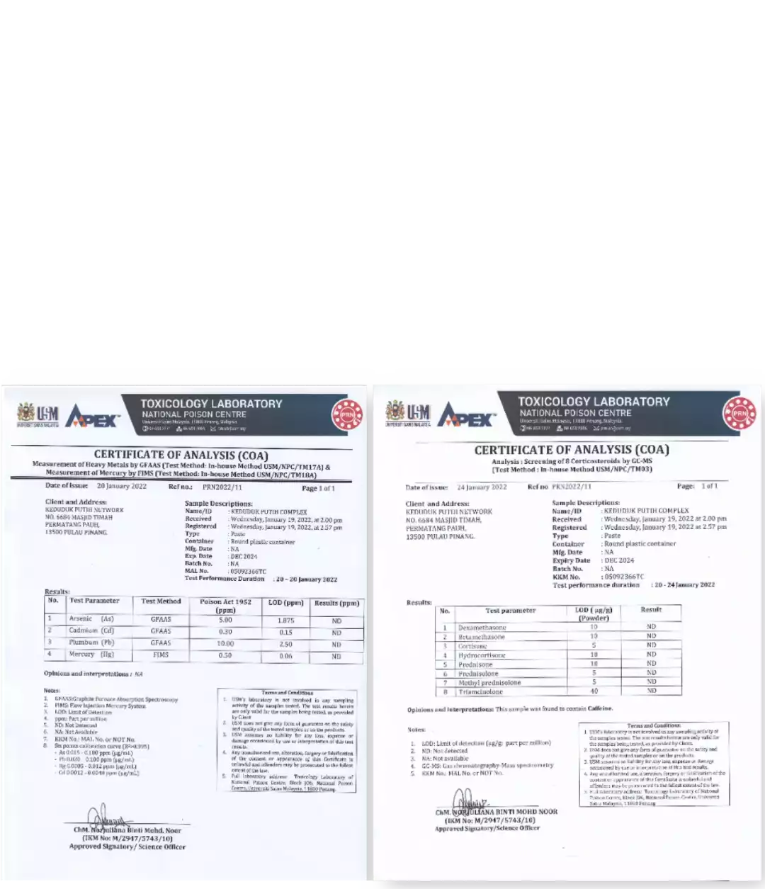 Jangan risau!! Jamu Akar Senduduk ini telah menjalani ujian oleh makmal bertauliah bagi memastikan tiada bahan-bahan yang memudharat kan kesihatan.